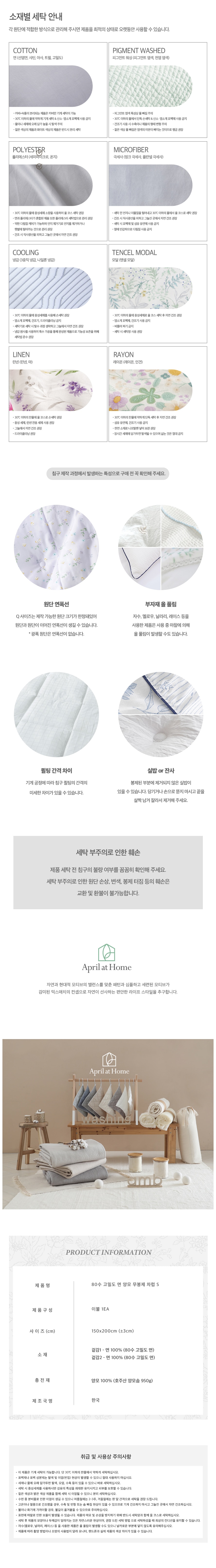 품명 | April At Home 80수고밀도면 양모 무봉제 차렵- 싱글 |