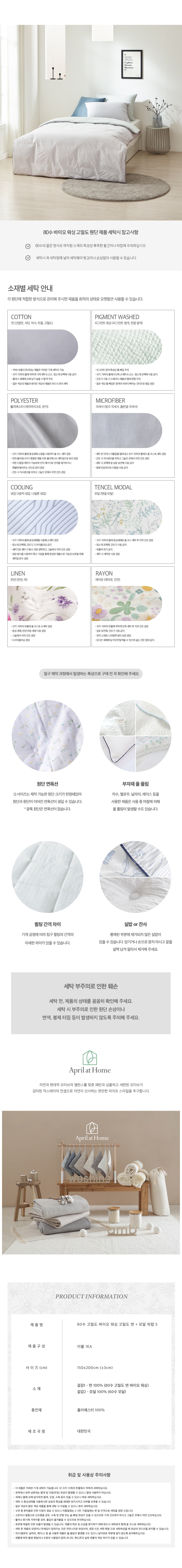 | 품명 | April At Home 모달 고밀도면 양면 차렵이불 - 싱글 |