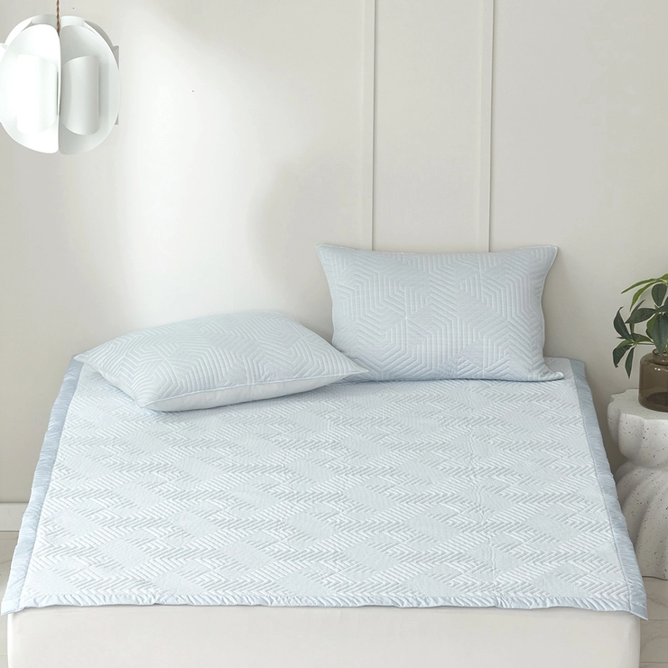 - PE 원사+솜+폴리 원사의 3중직 냉감 원단으로 제작되어 도톰한 두께감과 안정성을 제공하며 쿨링감을 극대화하였습니다.