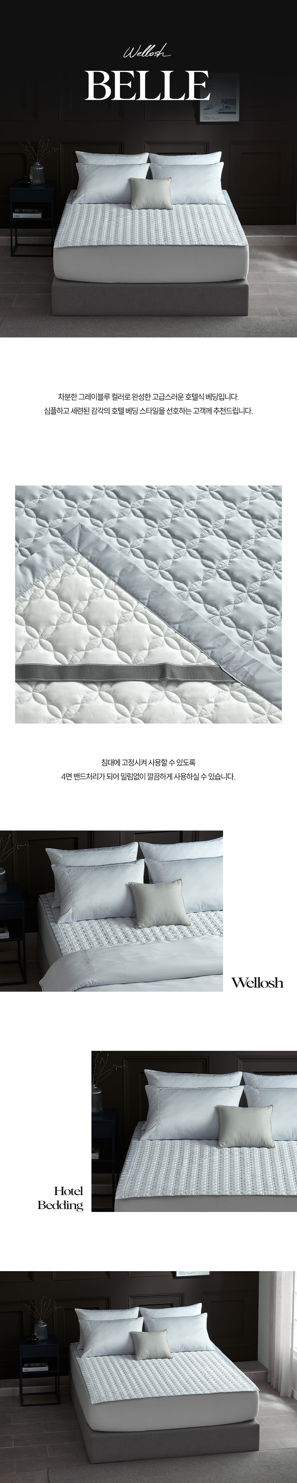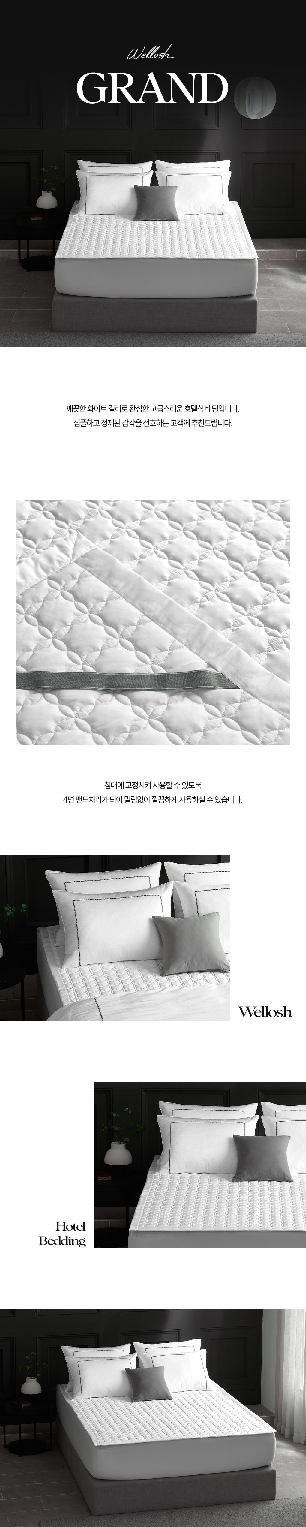 - 침대에 고정시켜 사용할 수 있도록 4면 밴드 처리가 되어 밀림 없이 깔끔하게 사용하실 수 있습니다.