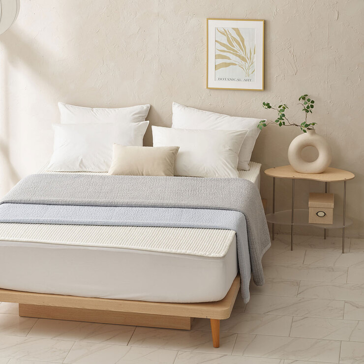 - 모달 소재에 항균솜을 도톰하게 넣어 자수 퀼팅으로 꼼꼼하게 줄누빔하여 보송보송한 감촉을 느낄 수 있습니다.