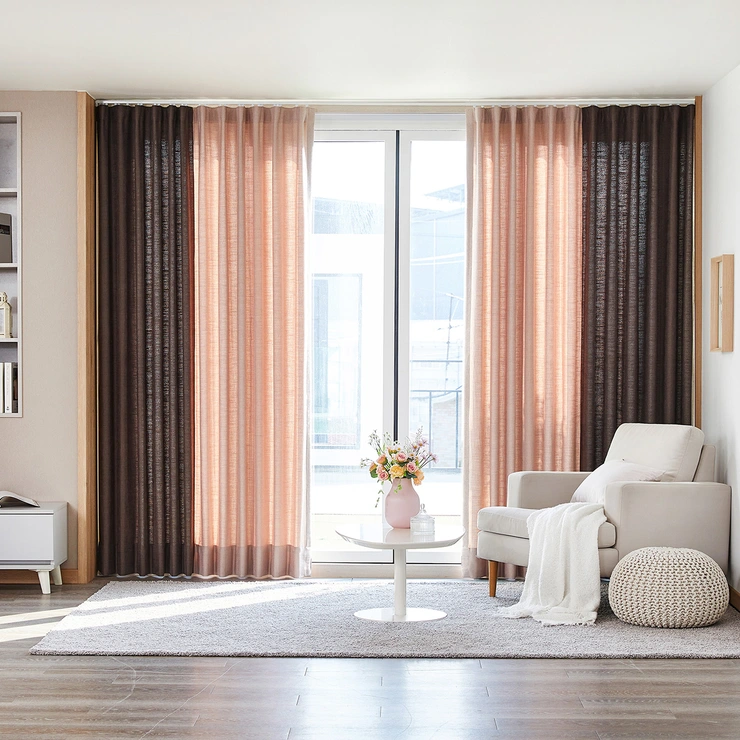 - 셔닐사의 포근하고 따뜻한 느낌과 은은한 광택이 매력적인 컬러 콤비네이션 커튼입니다.