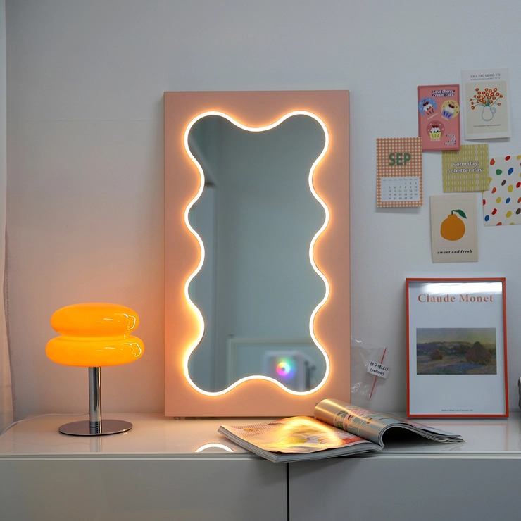 끌리마 웨이브 LED 조명 거울 - 핑크