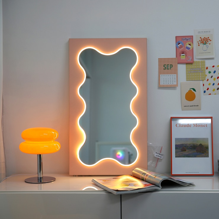 | 품명 | 끌리마 웨이브 LED 조명 거울 - 핑크 |