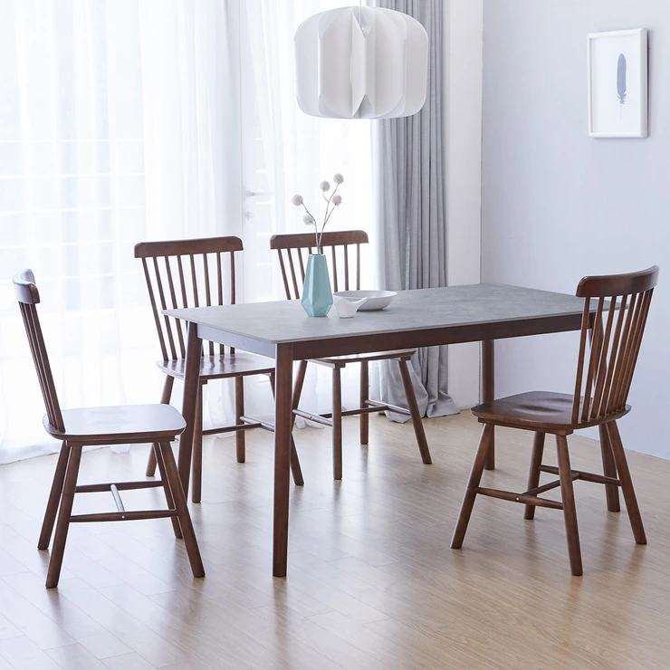 리비니아 TOTO 포세린 세라믹 4인 식탁세트 - 월넛(의자) + 그레이(세라믹 상판),