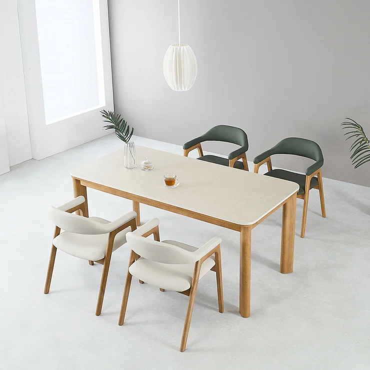 - 색상: 식탁-프레임 내츄럴 / 양면 세라믹 상판 크림베이지 및 화이트 양면, 의자-프레임 내츄럴 / 방석 아이보리 및 그린