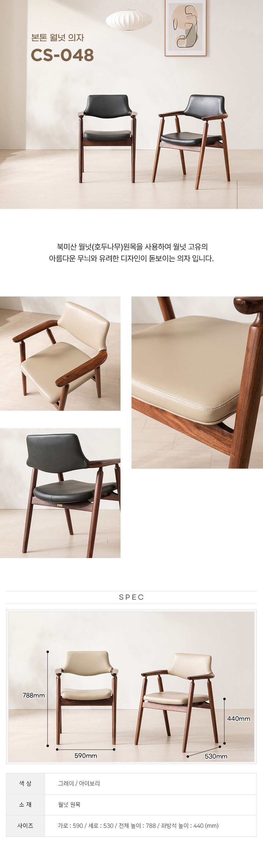- 색상: 프레임-월넛, 좌방석-그레이, 아이보리