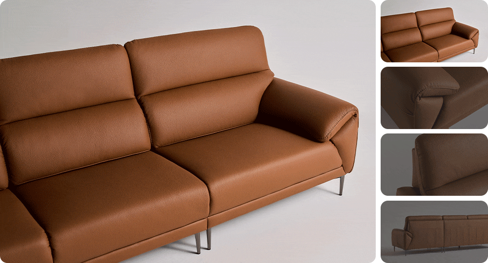 - 소재: [외장재] 이태리 천연 소가죽, [내장재] 고밀도 스펀지 38kg/m3, 22kg/m3, E0 합판, 소할재, 이태리밴드
