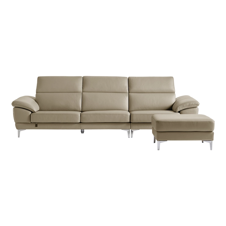 Dauning Mathiez Headrest All Leather Sofa For 4 w/ Stool - New Beige
