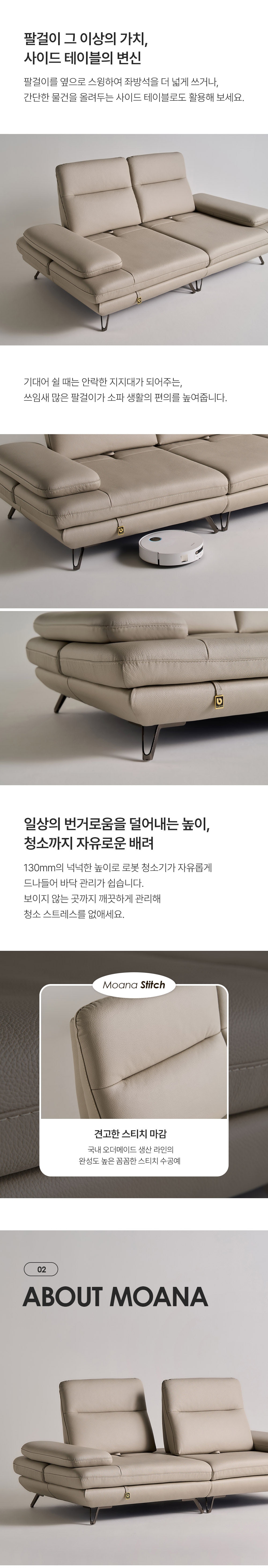 - 130mm 높은 다릿발로 소파 아래 관리가 용이합니다.