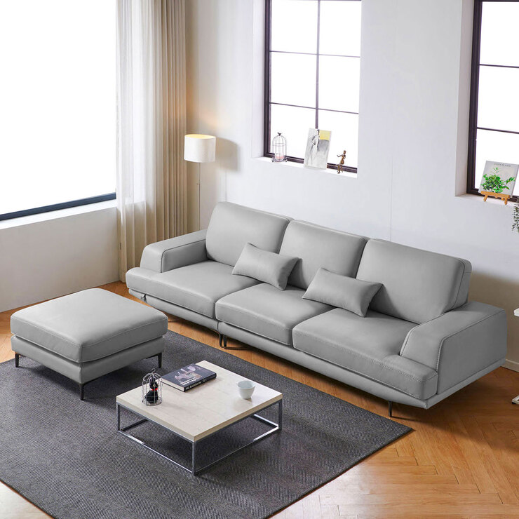 Satva Positano Grain Leather Sofa for 4 w/ Ottoman - Cream Grey