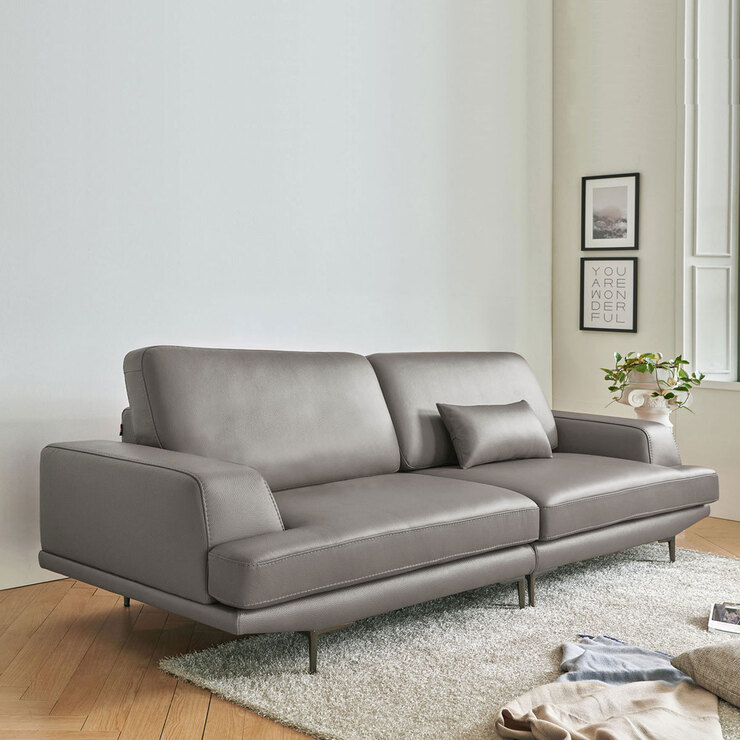 사트바 포지타노 이태리 통가죽 3.5인 소파 - 스틸그레이
