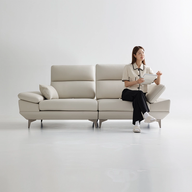 - 소재 : 외장재 - 천연 면피 통가죽 + 인조가죽 / 내장재 - 32kg 고밀도 우레탄폼 스펀지 + 목재 + E0 합판
