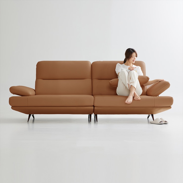 UND 에디션 NA13 천연 통가죽 소파 3.5인 - 러스트 카멜