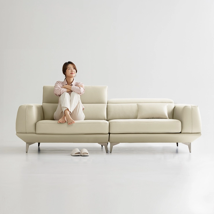 - 헤드레스트는 사용자의 목적에 맞게 각도가 조절되며 가장 낮게 해놓았을 때는 소파 전체 높이가 낮아지게 보여서 거실의 공간감을 살려줍니다.