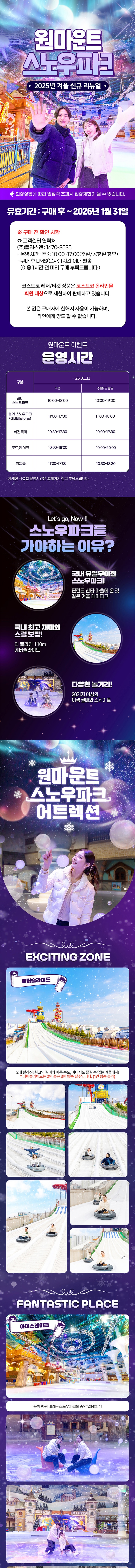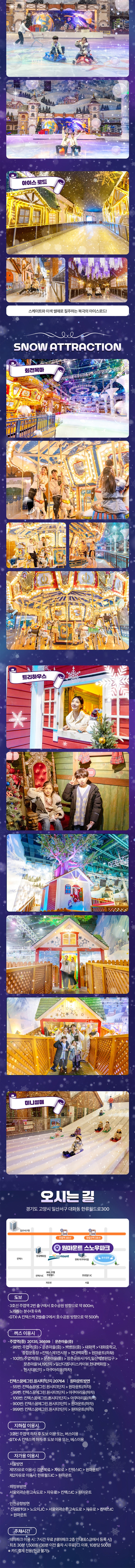 - 원마운트 스노우파크 : 상세 페이지 참조 ( 운영시간은 현장 상황에 따라 변동 가능하므로, 홈페이지 참고)