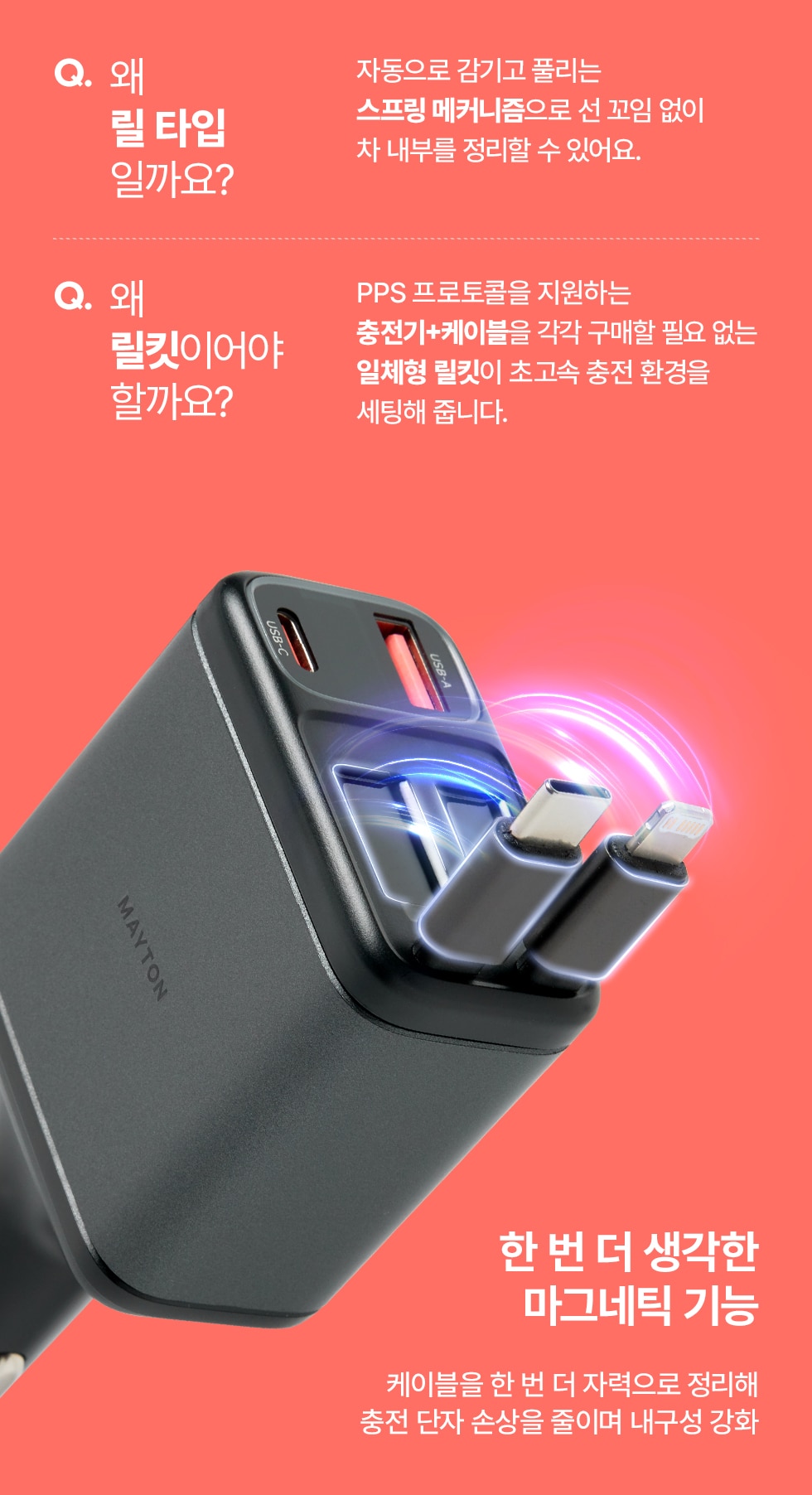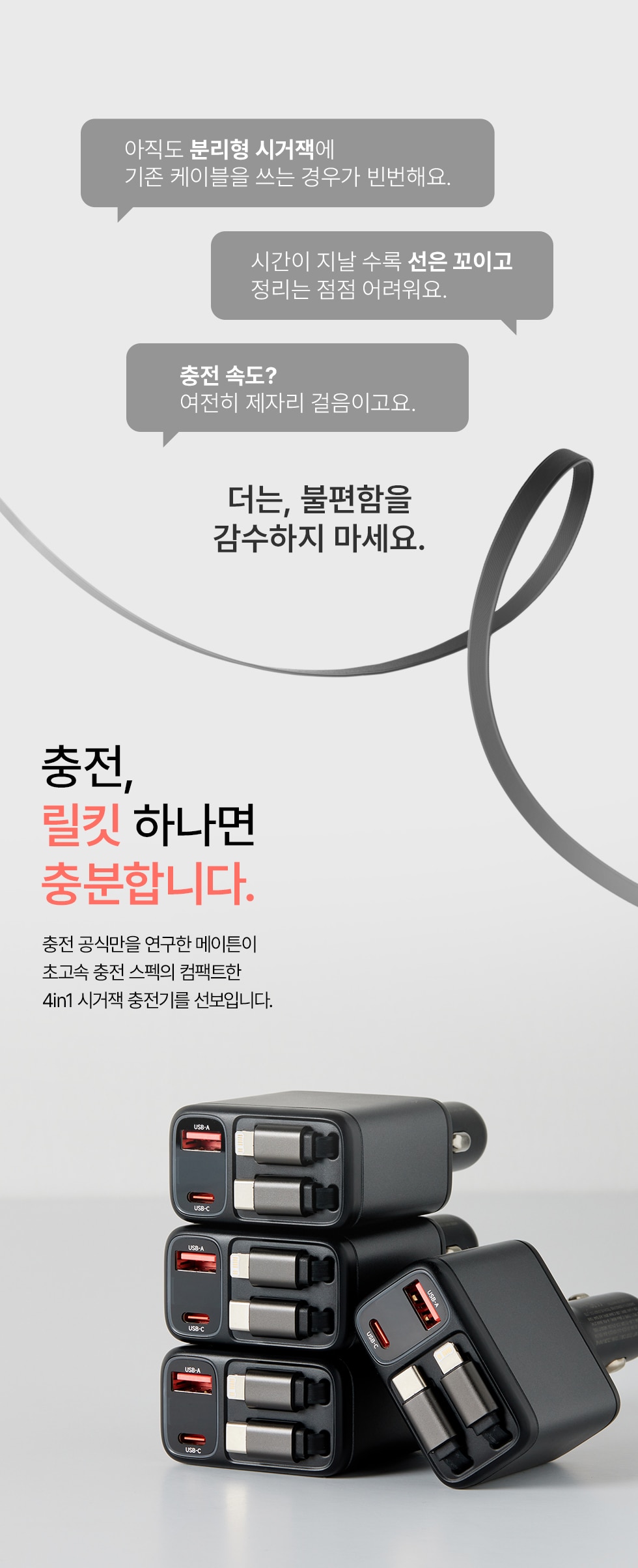 메이튼 차량용 충전기 시거잭 4in1 릴킷