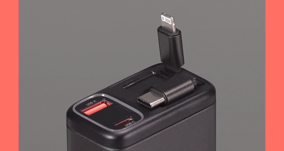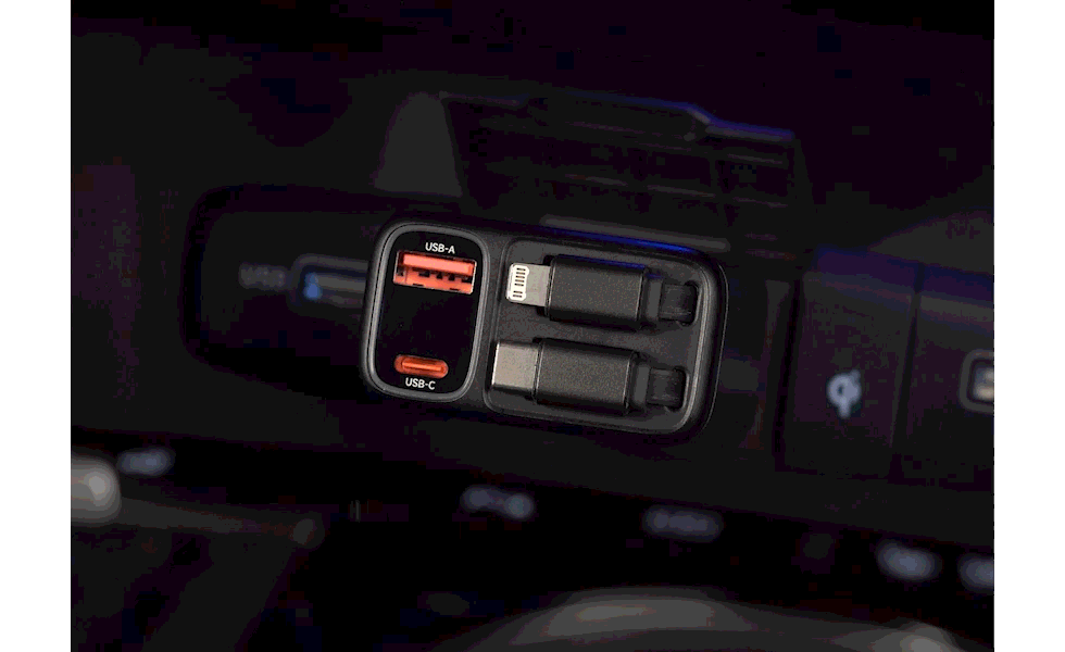 | 정격전압, 소비전력 | 정격 전압 : DC 12V-24V USB-A 출력 : 5V/3A, 9V/2.5A, 12V/2.5A (최대 30W) Type-C 출력 : 5V/3A, 9V/3A, 12V/2.5A (최대 30W) Type-C 케이블 출력: 5V/3A, 9V/3A, 12V/3A, 15V/3A, 20V/3A 3.3V~11V/3A, 3.3~21V/3A (최대 66W) 8핀 케이블 출력 :9V/3A (최대 27W) |