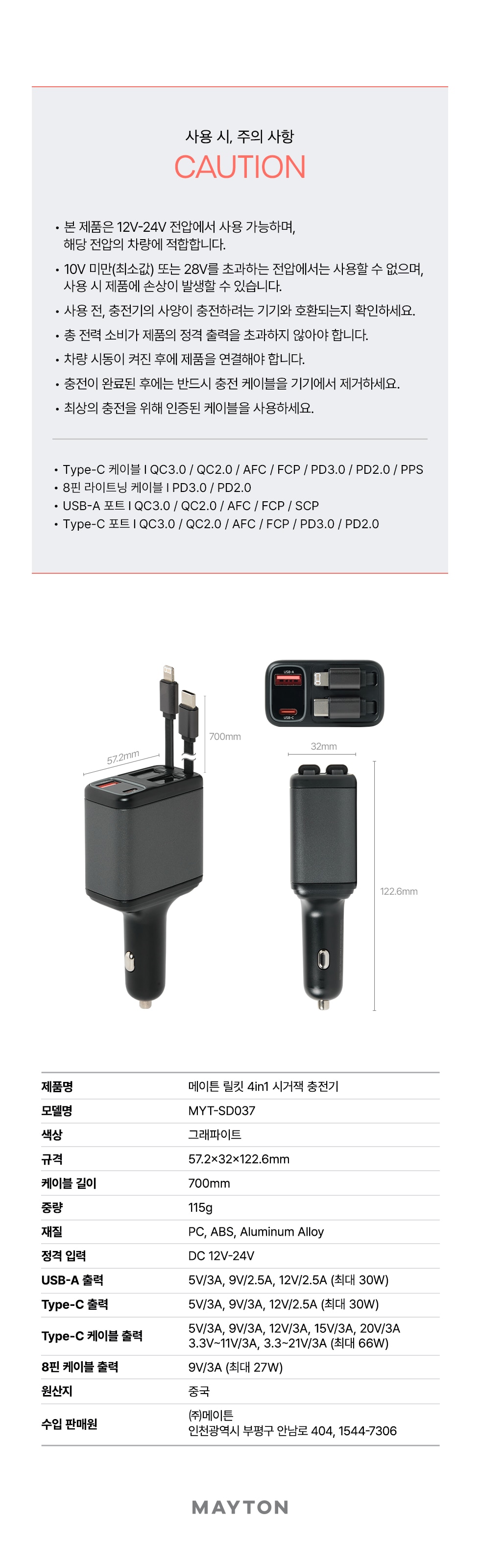 | 품명 | 메이튼 차량용 충전기 시거잭 4in1 릴킷 |