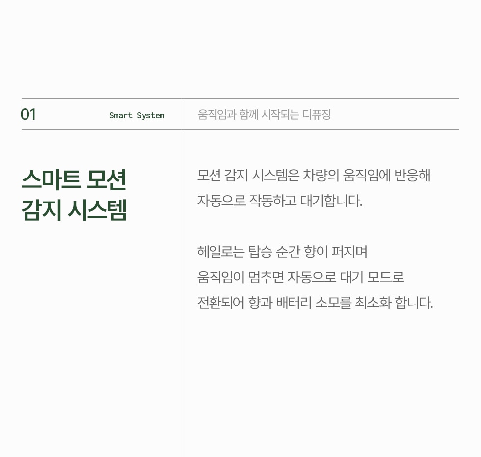 - 스마트 모션 감지 시스템 (움직임과 함께 시작되는 디퓨징