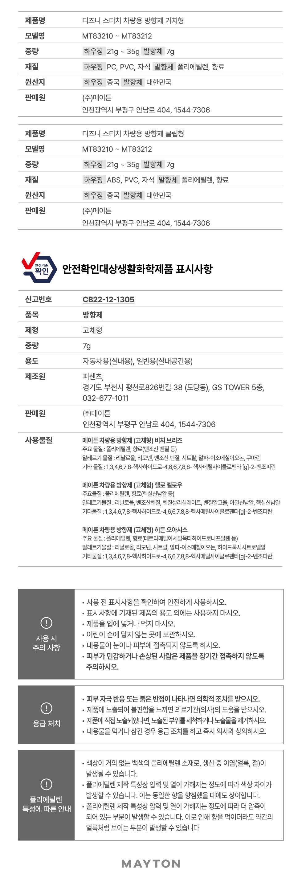 | 품목 및 제품명 | 메이튼 스티치 차량용 방향제 |