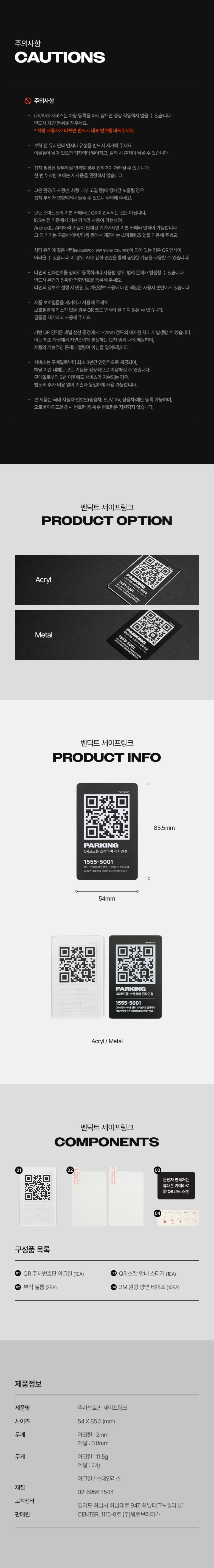 | 품명 | 벤딕트 자동차 안심번호 QR코드 주차번호판 아크릴 |