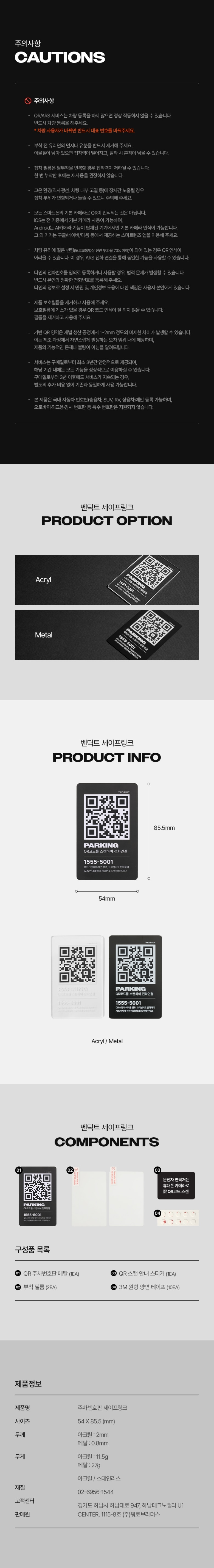 | 품명 | 벤딕트 자동차 안심번호 QR코드 주차번호판 메탈 |