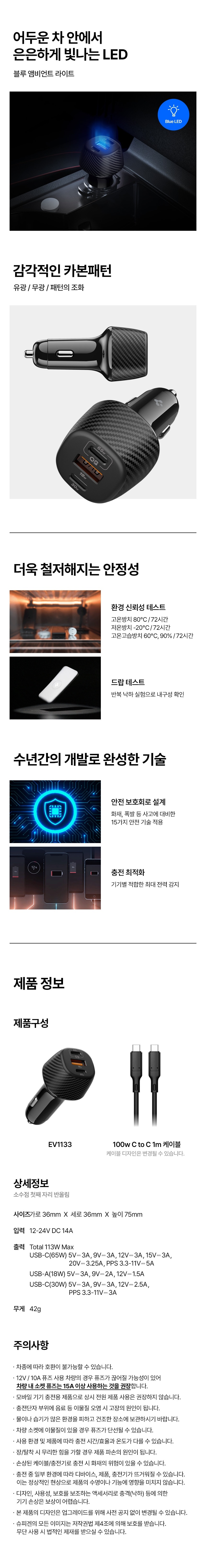 - 구성: 시거잭 충전기 본체, USB C to C 케이블