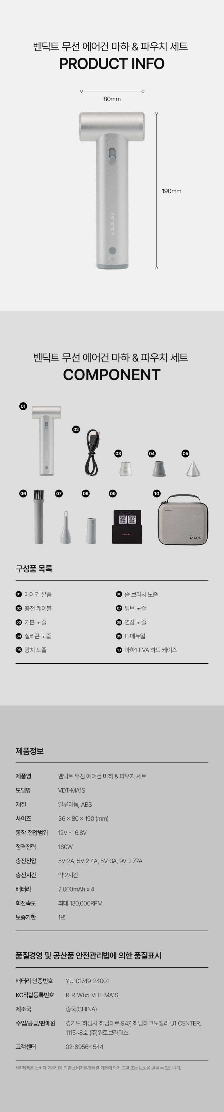 | 품명 | 벤딕트 무선 미니 에어건 마하 |