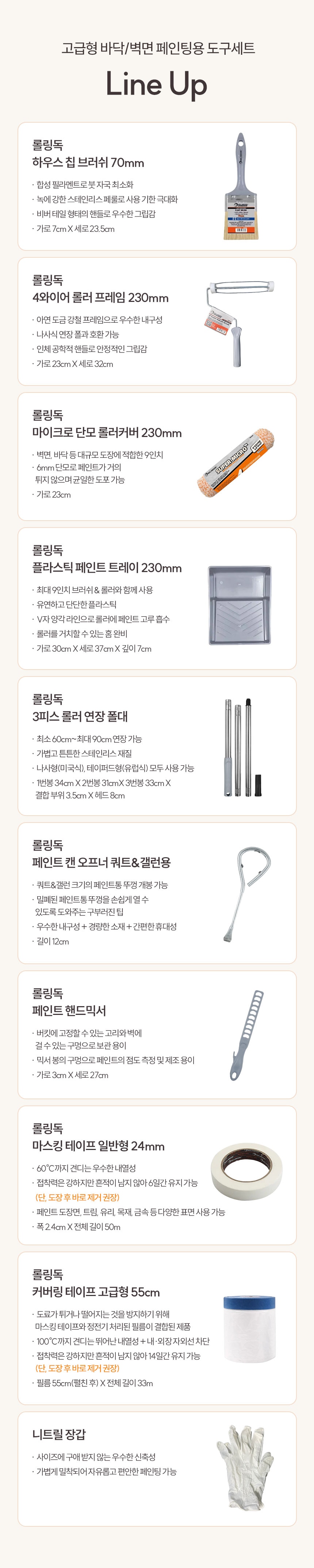 - 넓은 면적을 쉽고 빠르게 작업할 수 있는 올인원 도구 세트