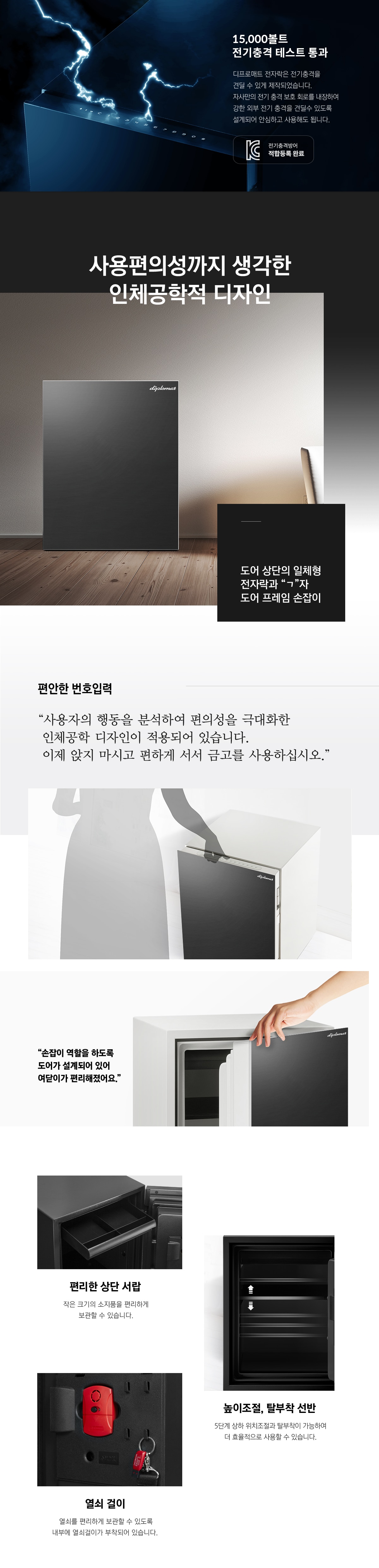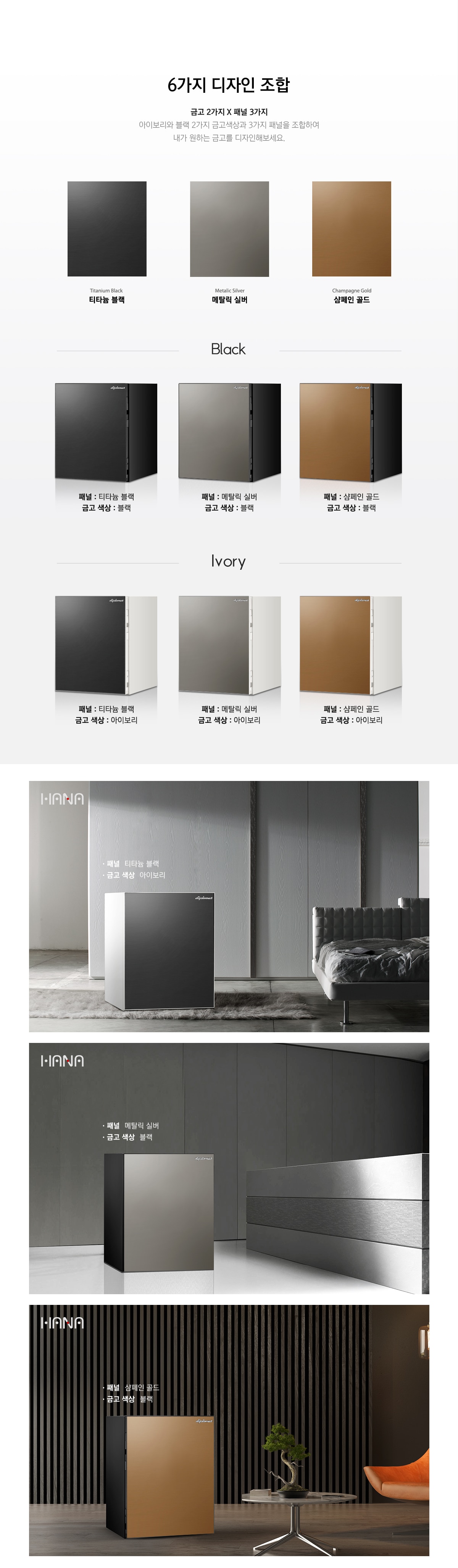 - 2가지 금고색상과 3가지 패널조합 으로 원하는 금고 디자인 가능
