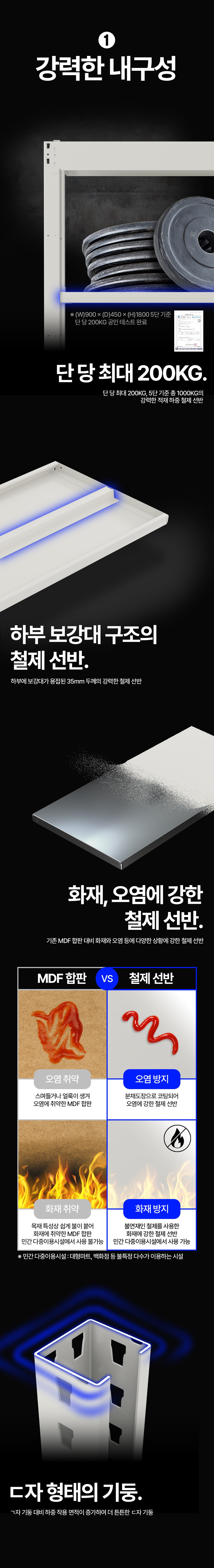 - 철제 선반 적용으로 오염과 화재 위험을 낮춰 대형 시설에서도 안전하게 운용.