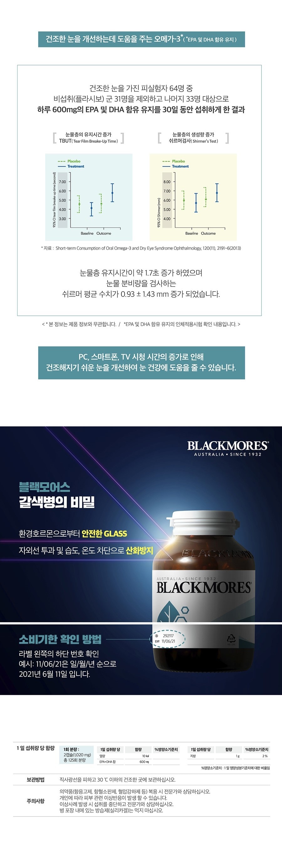 제조업소의 명칭 및 소재지 | 수입업소명: 블랙모어스코리아 유한회사 / 제조업소명: Blackmores Limited / 수출국명: 호주 |