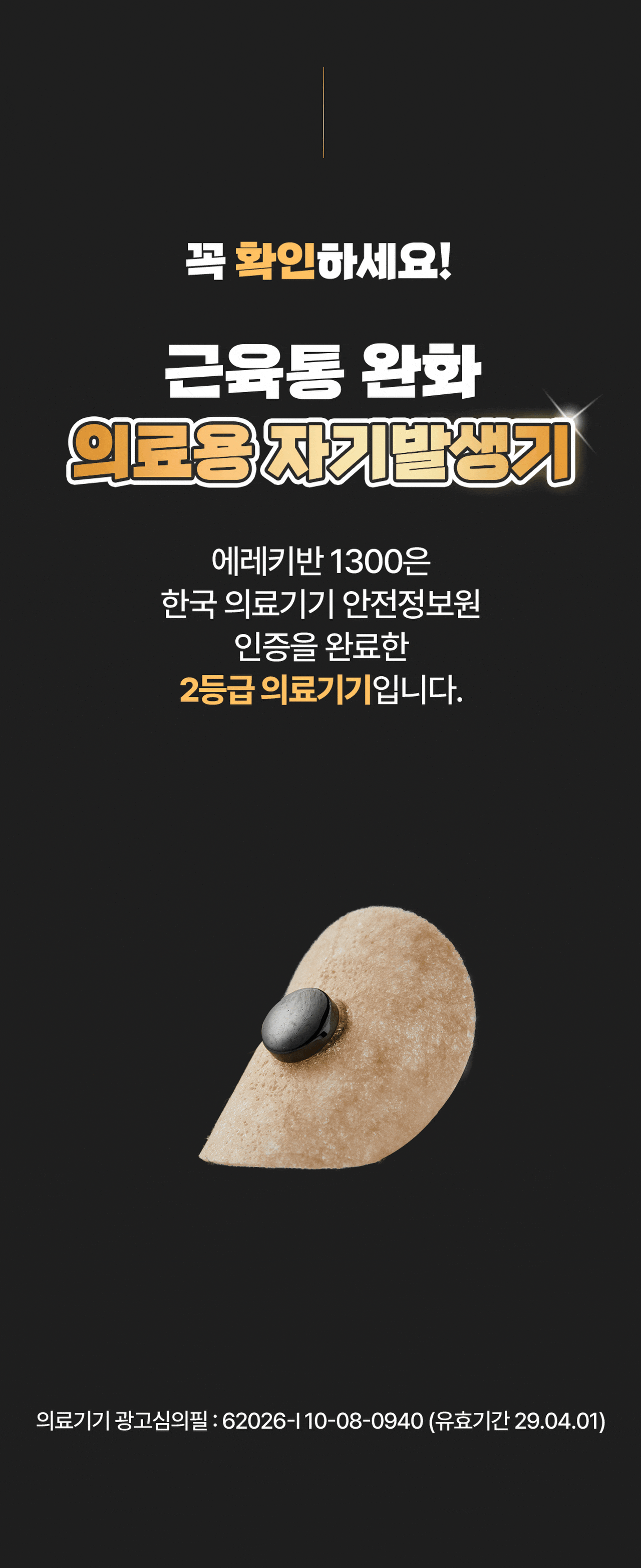 - 근육통의 완화 등을 목적으로 영구자석의 자계를 이용하는 의료용 자기발생기입니다.