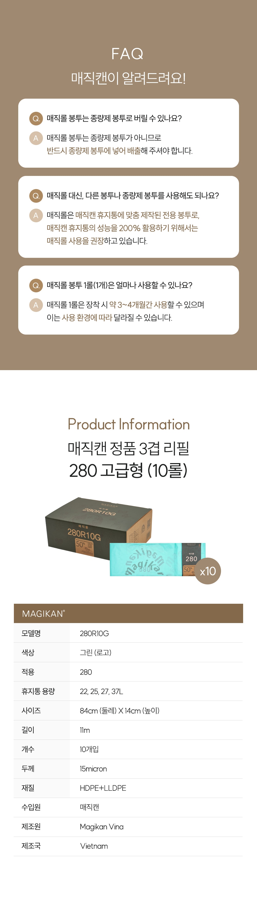 | 품명 | 매직캔 매직롤 280 봉투 리필용, 27L x 10개 |