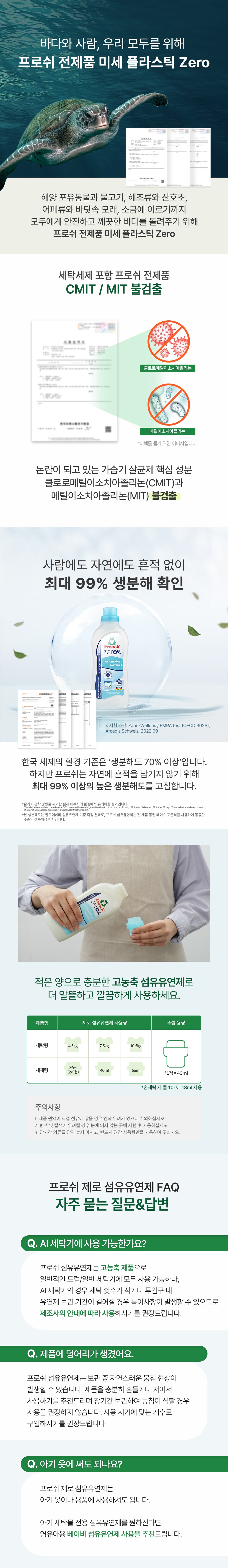 | 품목 및 제품명 | 섬유유연제 / 프로쉬 제로 섬유유연제 |
