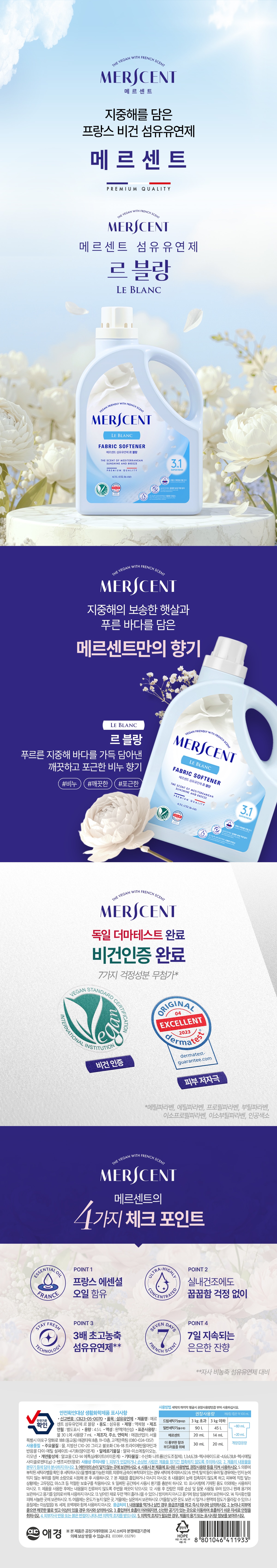 | 품목 및 제품명 | 섬유유연제 / 메르센트 섬유유연제 르 블랑 |