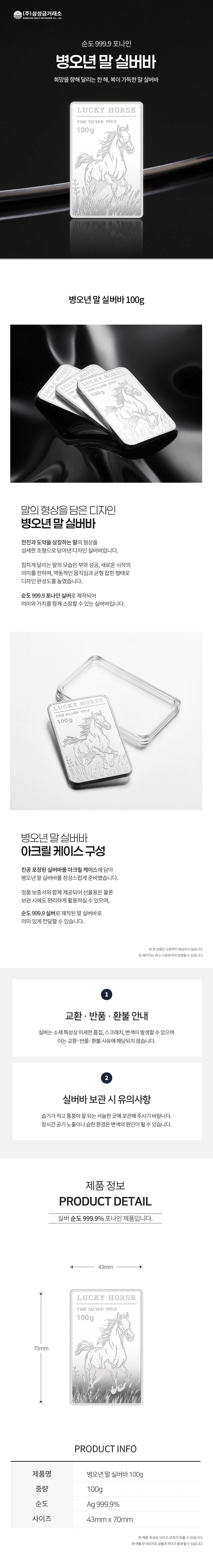 | 소재/ 순도/ 밴드재질 | Ag 999.9% |