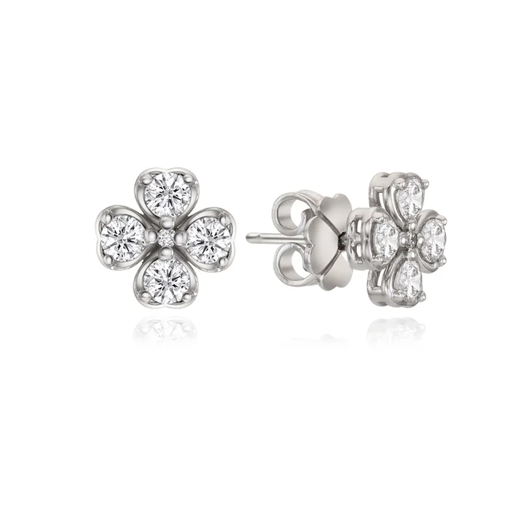 - 행운을 상징하는 클로버 디자인의 단정하고 다이아몬드 세팅이 고급스러운 귀걸이입니다.