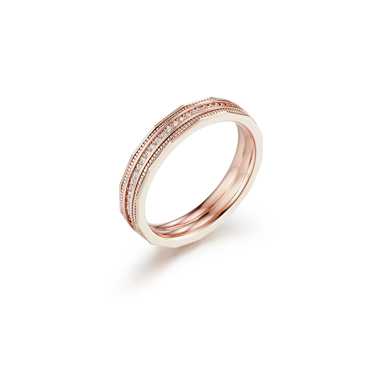 - 세 줄의 밀그레인 라인과 투톤 디테일이 고급스러운 입체감을 선사하며 클래식하면서도 여성스러운 무드가 조화를 이루는 디자인의 여성 반지입니다.
