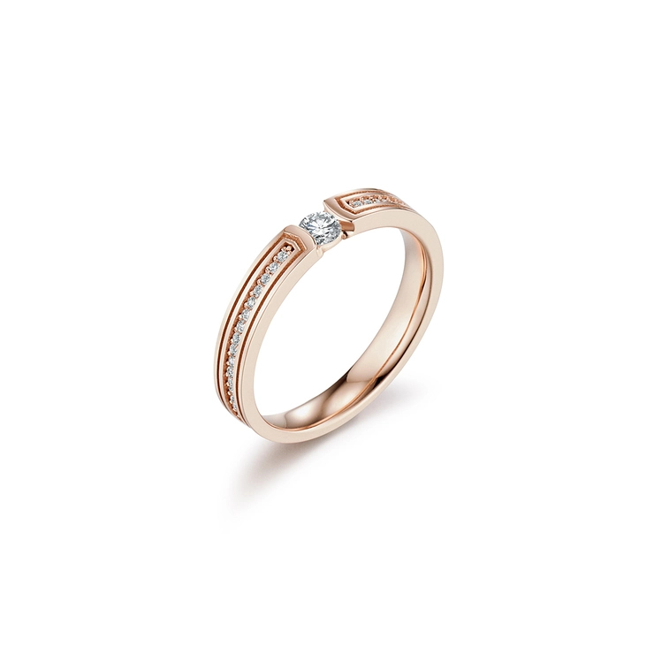 - 두 줄의 정교한 메레 다이아 세팅으로 섬세하고 화사한 빛감을 연출합니다.