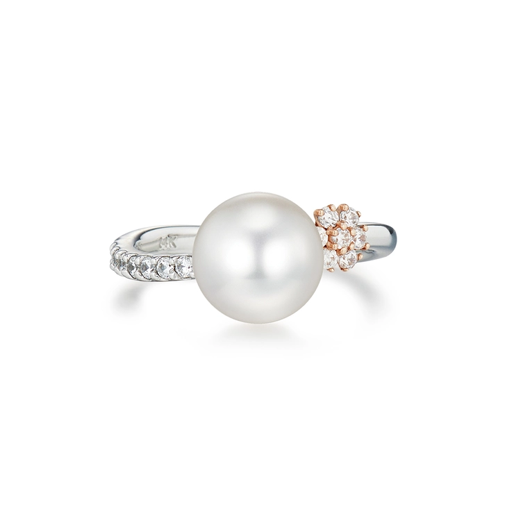 - 진주 특유의 은은한 광택과 다이아몬드의 반짝임이 어우러져 고급스러운 분위기를 연출하며 데일리 착용은 물론, 격식 있는 자리에서도 잘 어울리는 다재다능한 디자인의 진주 반지입니다.