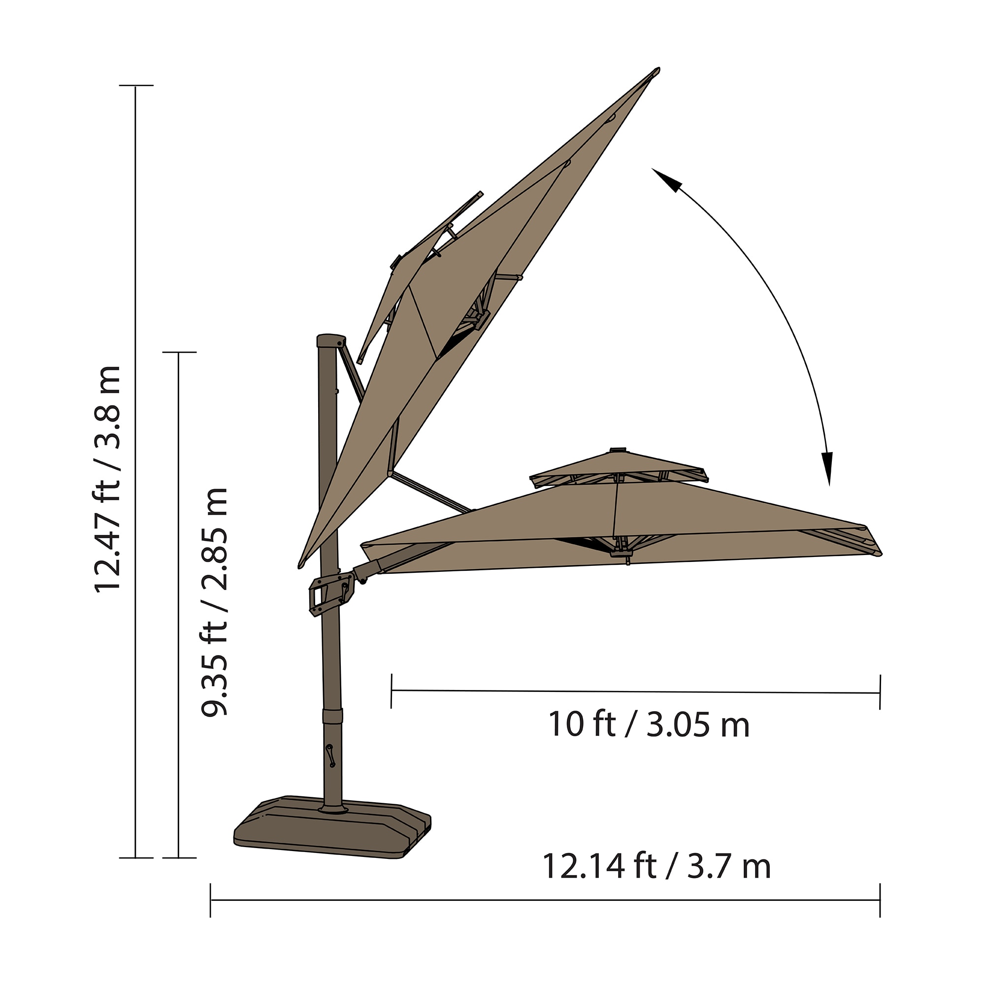 ATLeisure 10 Cantilever Umbrella w/LED , Pebble