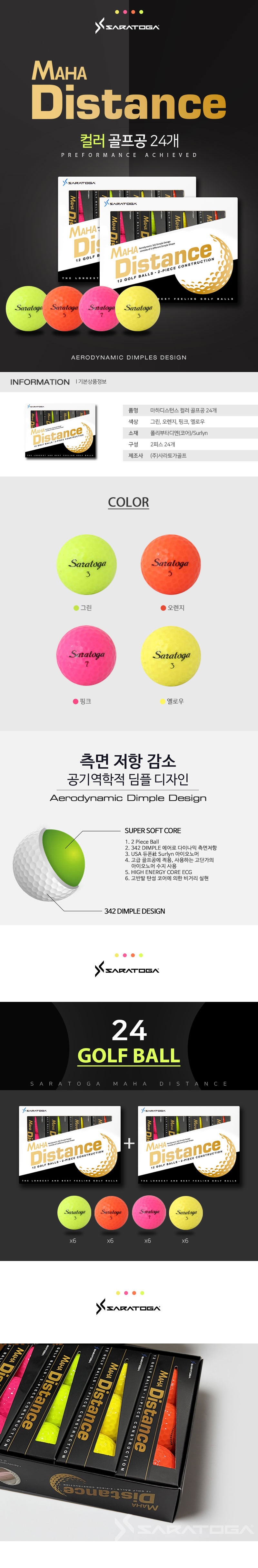 | 품명 | 사라토가 마하 디스턴스 2 피스 칼라 골프공 24 개 |