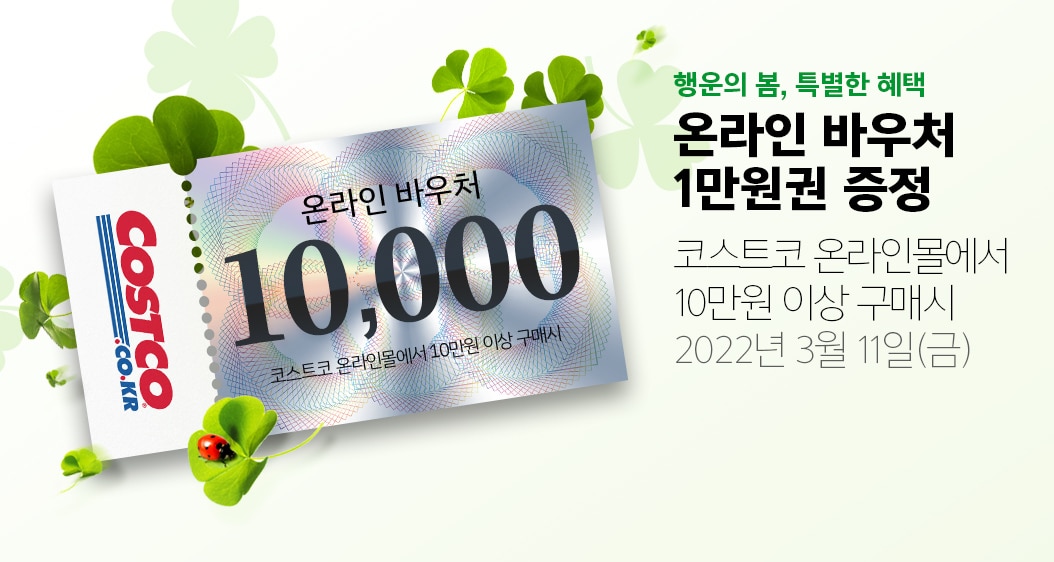 - 본 이벤트는 이벤트 기간 내에 코스트코 온라인몰에서 마케팅 이메일 수신동의 및 주문 1회 최종 결제금액(모든 할인 및 바우처 적용 후)이 10만원 이상인 회원님께만 적용됩니다.